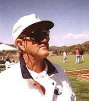 The wind was so strong at times that, on a court adjacent to the above match, the player was swinging to hit a ball on the yardline and while he was swinging the mallet, the ball was blown back between his legs. Those whose stance includes stiff legs with no flex at the knees had the greatest difficulty in maintaining a stable position to counter the gusts of wind. The first game of the match between Jacques Fournier (USA) and Paul Skinley (NZ), drew an audience when Fournier pegged out Skinley's forward ball. Skinley was traveling well, with his first clip on 4-back, but well into his second break he did not hit the ball hard enough to get it through 2-back. Fournier's clips were on hoops 1 and 2. Fournier proceeded to take red to 4-back. Each player had a number of opportunities, and several times the most appropriate tactics were not used. Finally Fournier pegged out Skinley's ball, with his other clip on hoop 5, and Skinley's on 4-back. Skinley muffed two hoops, and missed several long roquets. Finally Fournier pegged out, to loud applause for a popular win. The second game was quicker, with Fournier winning 26-8 with a triple peel. It was a great day for the birthday boy. Three times World Champion, Robert Fulford (England) took a long time to win his first game against Andrew Hope (Scotland), the wind again interfering with play. The result was 26-7. The second game was quicker, with a typical Fulford triple peel, result 26-1. Other winners were: