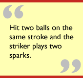 The croquet stroke is obsolete. It is replaced with the evocatively named "spark". A foot is placed on the striker's ball, with the sparked ball in contact. The striker's ball is struck so that the object ball moves, but the striker's must remain under the foot. The variety of the croquet stroke, with splits and stops and rolls, has no place in Gateball.