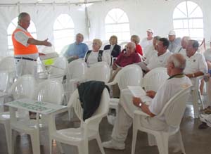 | The referees: They are being briefed by Chief Referee Gary Weltner.