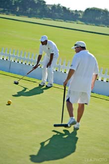 | Hamish McIntosh and Duncan Dixon both represented New Zealand in the invitational, and each won $1,000 as semi-finalists in the event with champions of Golf Croquet's "big five" dominating the field of eight. Duncan Dixon photo.