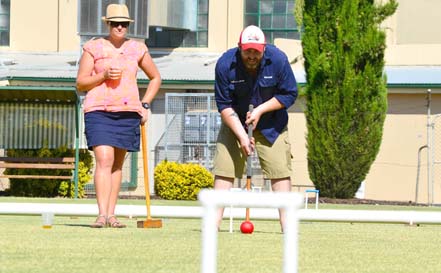 | Young professionals are playing Golf Croquet in Nicholls' sponsored program on the lawns of the Wagga Wagga Croquet Club.