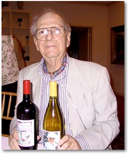 | The "Ink Grade" label for both white and red wines were donated to his tournament each year by Charlie Smith and Erv Peterson, who snapped this photo.