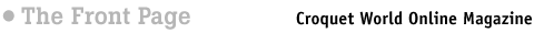 Material on this site is copyright © 1996-2008 Croquet World Online Magazine. The information presented here may not under any circumstances be resold or redistributed for compensation of any kind without prior written permission from Croquet World Online Magazine or the author, who retains full and permanent rights to his or her own work. Unless the material is generated directly by the CROQUET WORLD ONLINE MAGAZINE staff, the magazine has only one-time publication rights, and cannot give away or sell re-publication rights to the work of contributors. If you have any questions about these terms, or if you would like information about licensing materials from Croquet World Online Magazine, please contact us via email: Bobalman@aol.com. |